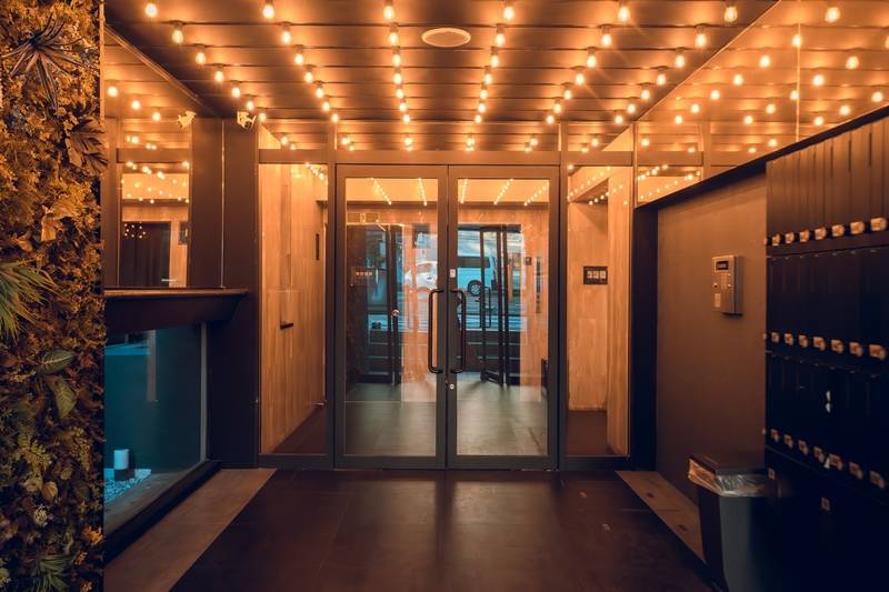 is equipped with two shared lounges, a co-working space, a theater room, a fitness room, and a rooftop terrace.